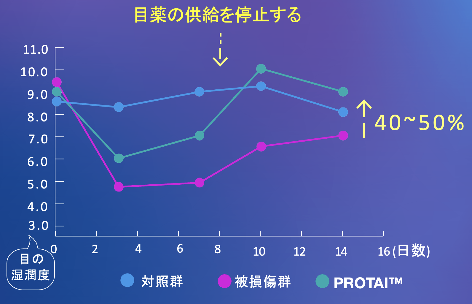 ドライアイの一般的なトリガーの1つは、現代の生活に普遍的な文明の問題に起因していることがあります。特に、スマートフォンの使用と大気汚染は、その潜在的な誘因の1つと見なされています。主な特徴は、眼球表面が十分な湿潤を欠いており、これが視覚の不快感や角膜の損傷につながる可能性があります。 実験の結果、PROTAI︎® と呼ばれる特異的配列ペプチドは、眼球の湿潤を向上させる上で優れた効果を発揮することが示されています。このペプチドは、角膜の修復を促進する能力を有しており、急性および長期のドライアイの改善効果を示しています。 要するに、PROTAI︎® の特異的配列ペプチドの使用は、ドライアイの症状を和らげる可能性があり、同時に眼部の健康促進に積極的な役割を果たすかもしれません。