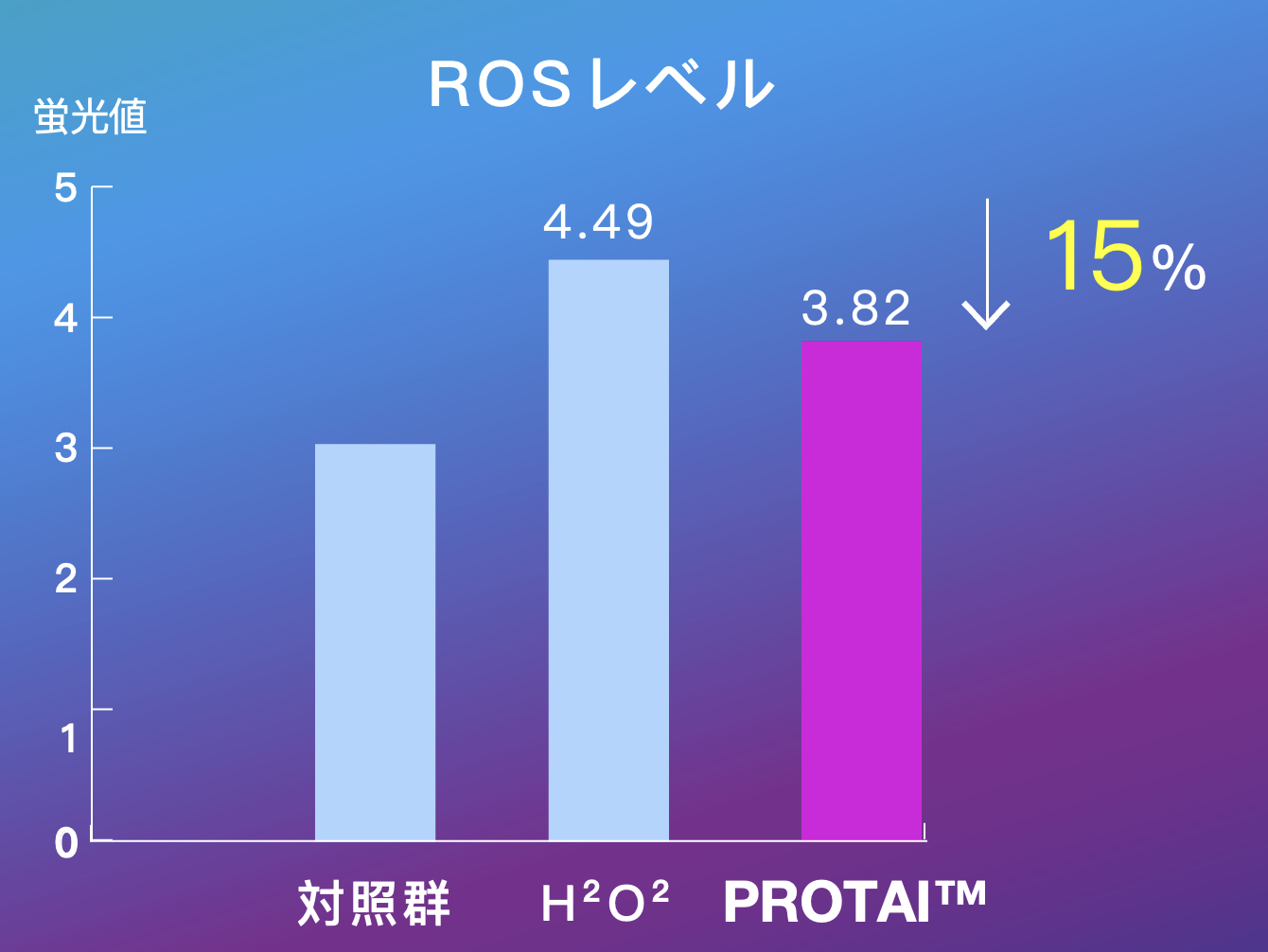 PROTAI™の追加後、ROS(Reactive Oxygen Species、反応性酸素種)が15%低下しました。