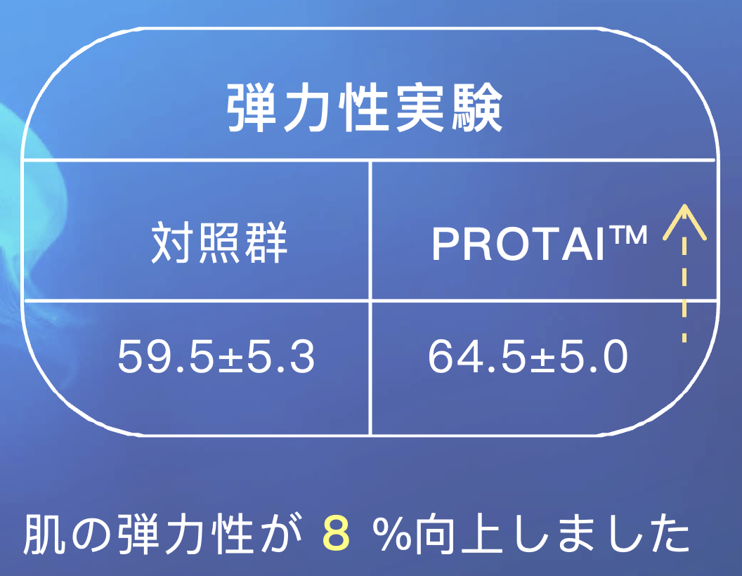 肌の老化は避けられない生理学的なプロセスであり、皮膚が天然の弾力性を失いしわが現れる原因となります。 PROTAI︎®はその卓越した特性により際立ち、抗酸化作用の強化、皮膚細胞の増殖促進、 優れた傷口修復と癒合効果、同時に優れた保湿効果を提供するなど、複数の重要な機能を備えています。 さらに、PROTAI︎®は肌の弾力性を向上させることが証明されており、肌の老化を効果的に遅らせるために、肌に対して包括的なケアを提供します。