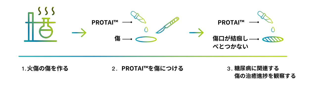 難癒の傷を持つ患者の看護は、非常に負担の重い責任です。 実験結果によれば、PROTAI︎® の配列特異的ペプチドは優れた修復能力を持っており、切創や火傷の傷口だけでなく、糖尿病患者の難治性の傷口にも効果的です。 糖尿病患者にとって、糖尿病が免疫機能の低下を引き起こすため、傷口の癒合はより困難になります。 そのため、糖尿病患者が傷口の癒合周期が延びていることに気付いた場合、小さな傷口でも即座に適切な処置を行うべきです。適切な治療が適用されない場合、感染のリスクが生じ、深刻な場合には病足の切断が必要な状態に進行する可能性があります。 そのため、糖尿病患者がこのような症状を経験した場合は、速やかに適切な治療を行い、進行する合併症を避けるようにする必要があります。