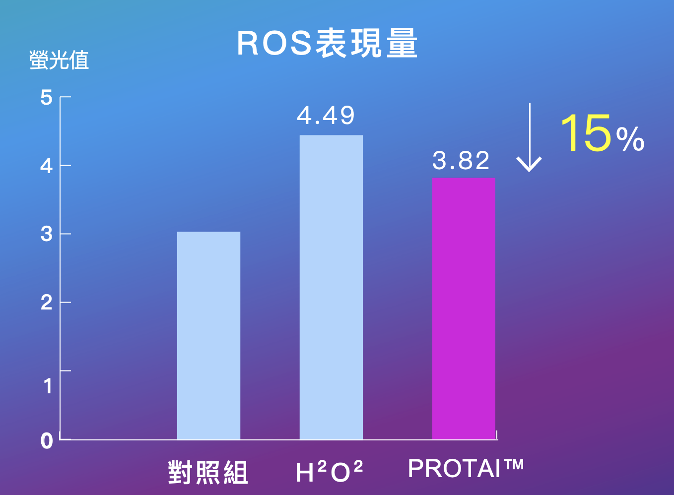 加入 PROTAI™ 的特定序列胜肽後,ROS 自由基降低15%