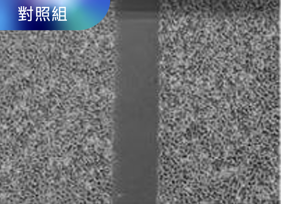 經過18小時的遷移修護測試,PROTAI™處理後的樣品,空白區域減少了3.4 ± 1.1.1,降低了77%。